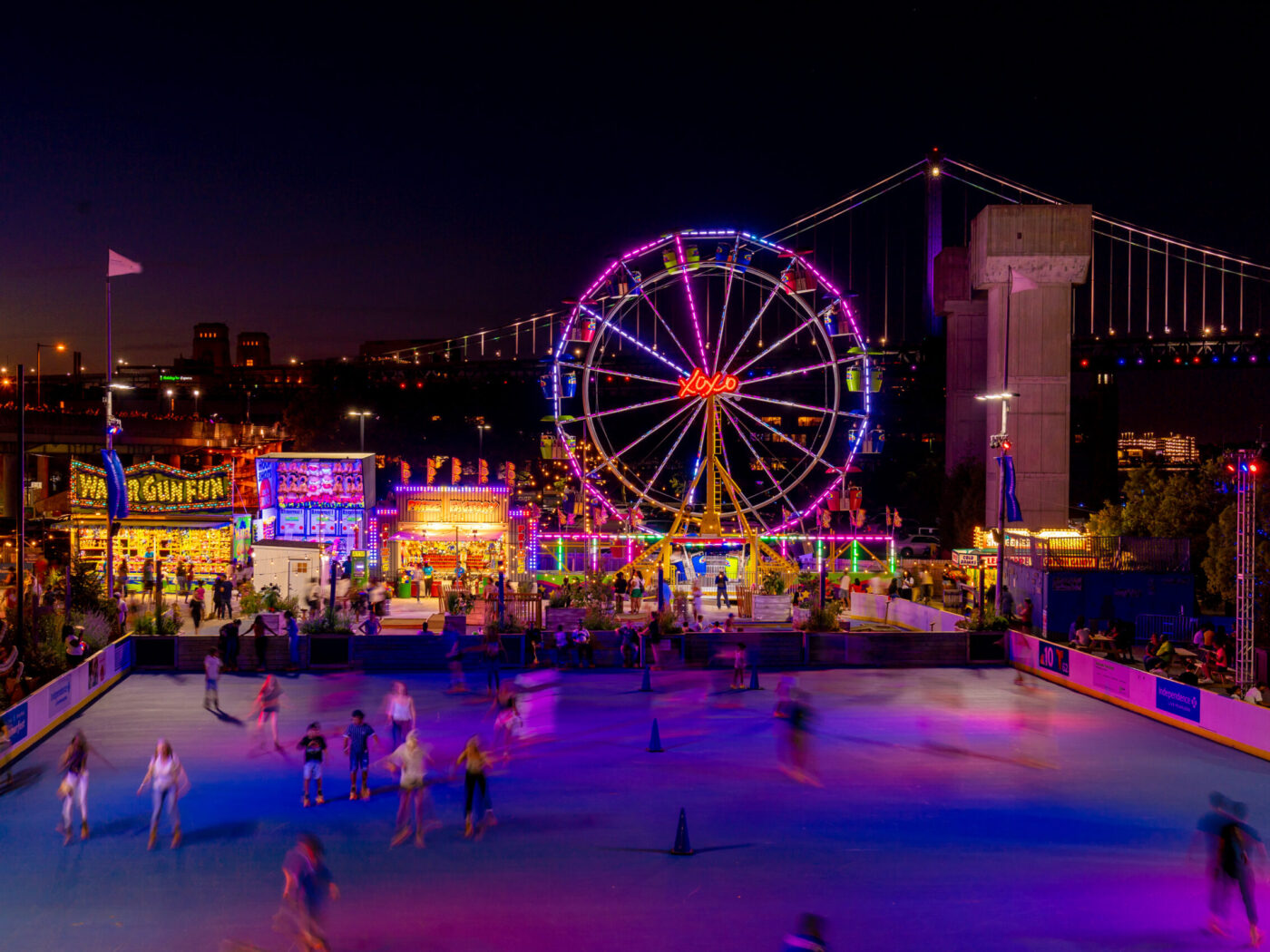 Voici une bonne excuse pour enfiler vos lunettes de soleil. La grande fête saisonnière de Penn's Landing fait ses adieux à l'été avec une immense salle de jeux, plus de jeux de promenade et d'attractions foraines que jamais, et une vue imprenable sur le fleuve Delaware. L'attraction propose également de nombreuses options de restauration, avec des mets très appréciés tels que les beignets de Skelly's, les cocktails du Lodge Bar et les frites au crabe de Chickie's & Pete's. Nouveautés pour 2024 : un parcours de minigolf 18 trous spectaculaire, de nouveaux manèges tels que des montagnes russes pour enfants et un manège tournoyant, ainsi que des menus élargis. L'entrée est gratuite, tout le reste est payant à l'utilisation. Veuillez noter que la patinoire elle-même est fermée pour cause de travaux.